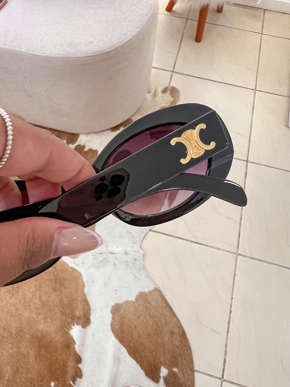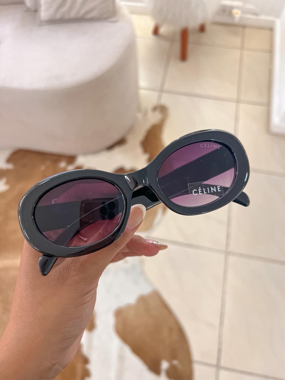 Óculos de sol inspiração celine com armação e lentes escuras;
