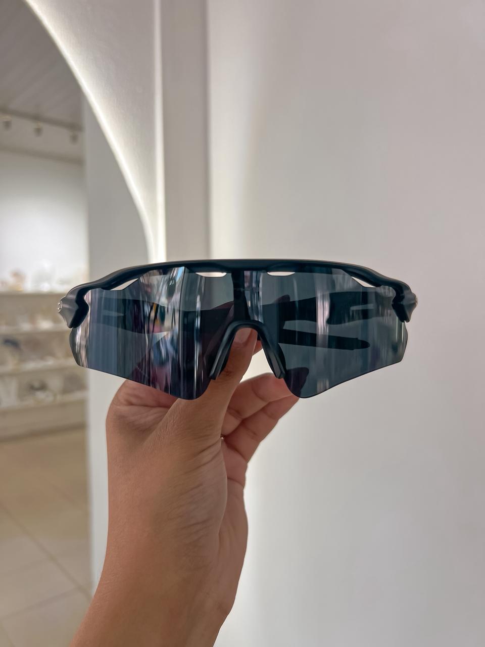 Óculos de sol inspiração oakley com armação e lentes preta;