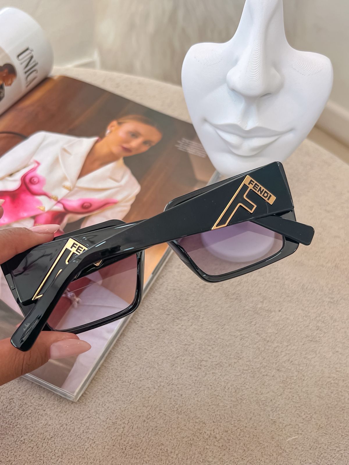 Óculos de sol inspiração Fendi quadrado todo preto com lente escura;