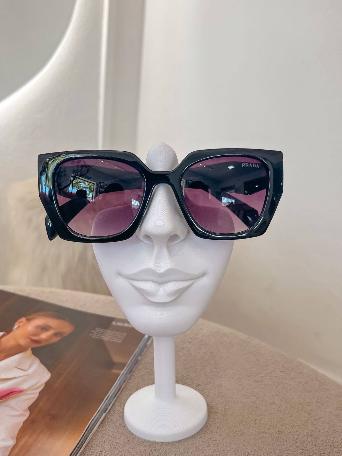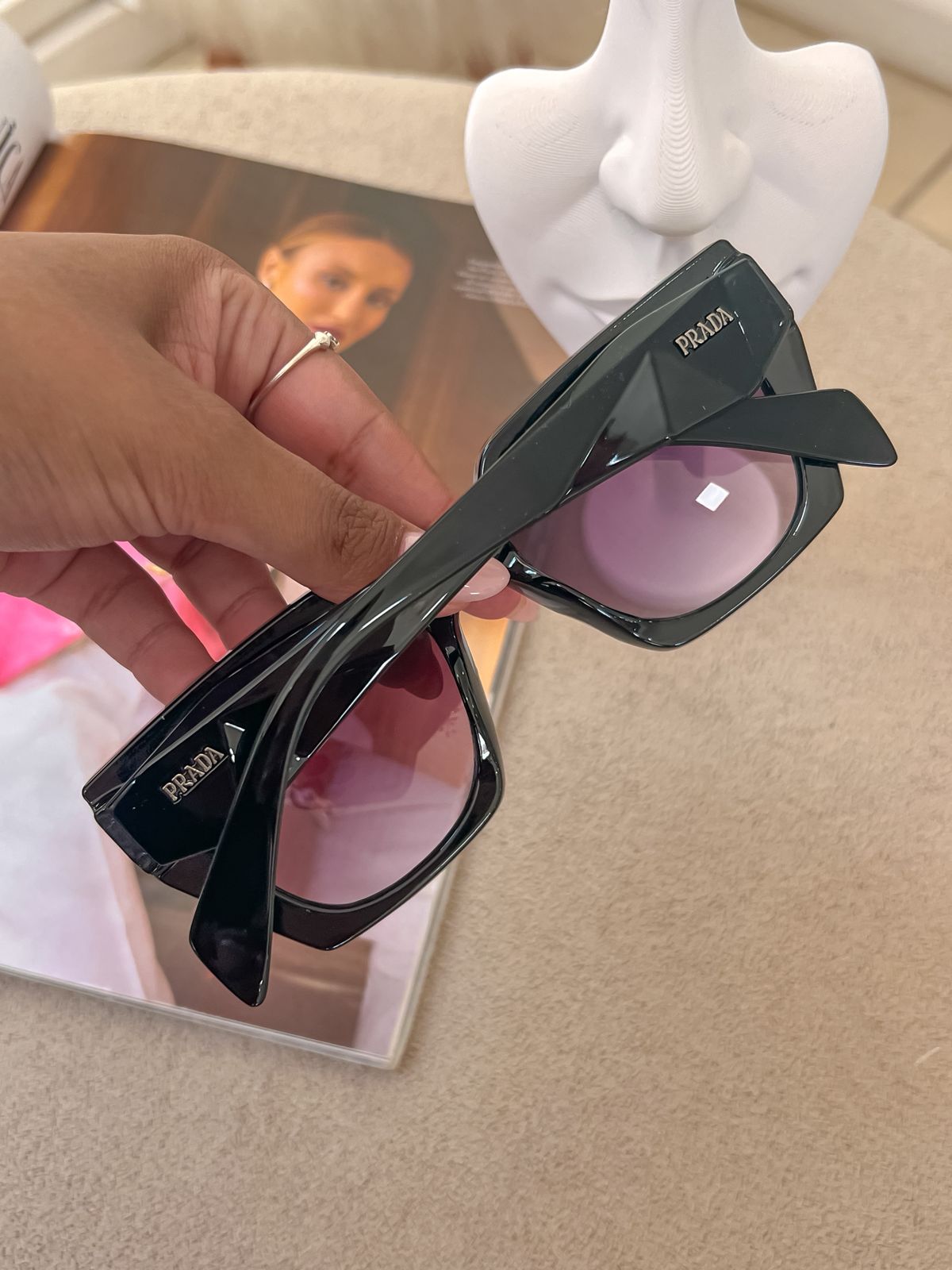 Óculos de sol inspiração Prada todo preto com lente escura degrade;
