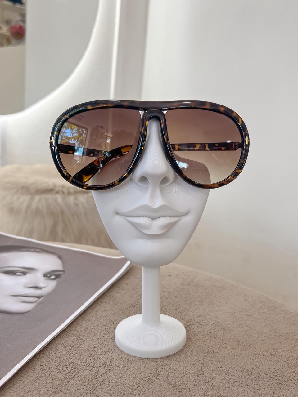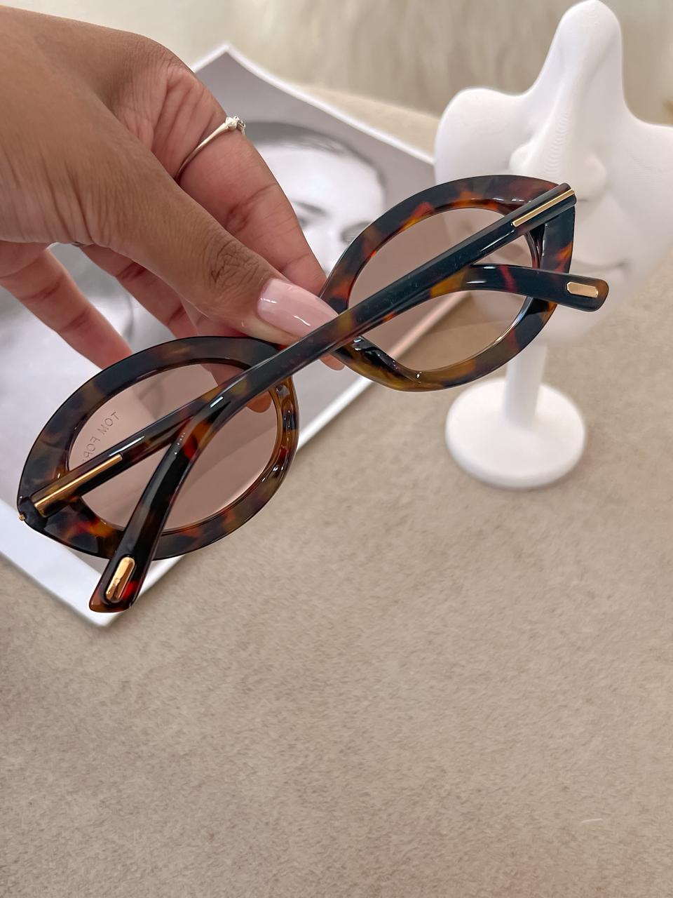 Óculos de sol inspiração Tom Ford tartaruga oval com lente marrom claro;