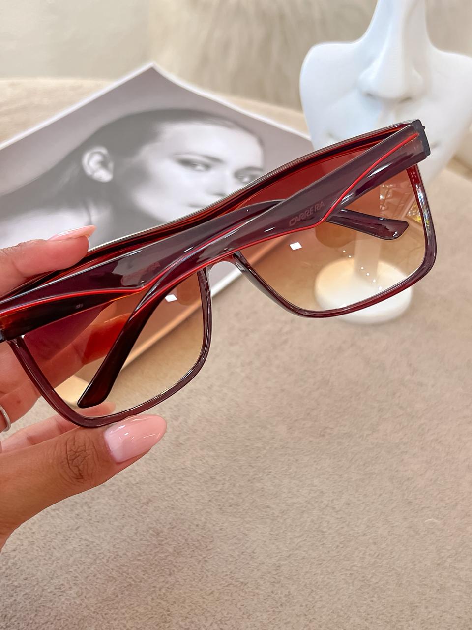 Óculos de sol masculino inspiração Carrera marrom com lente degrade;