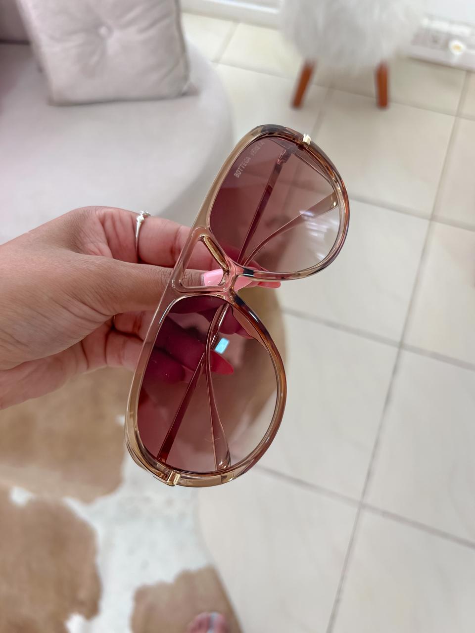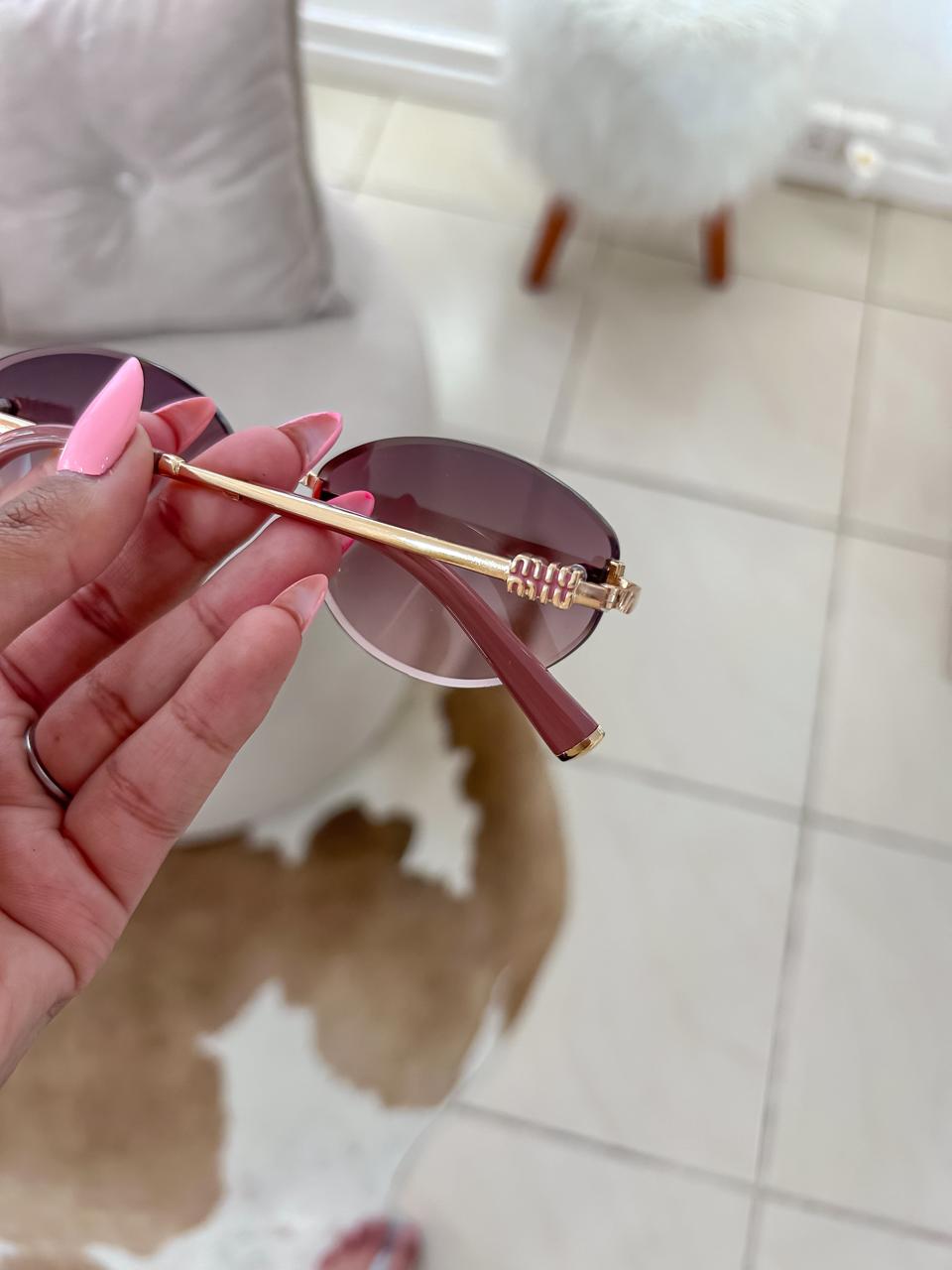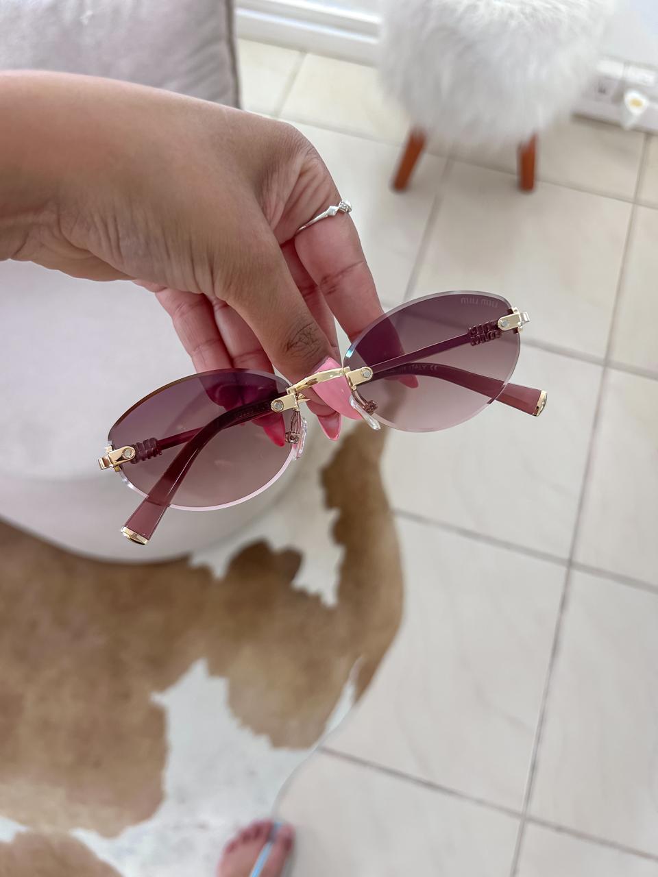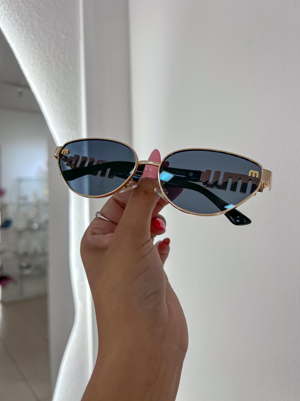 Óculos de sol inspiração miu miu roxo com detalhes dourado;