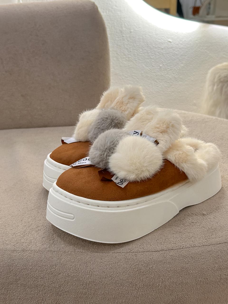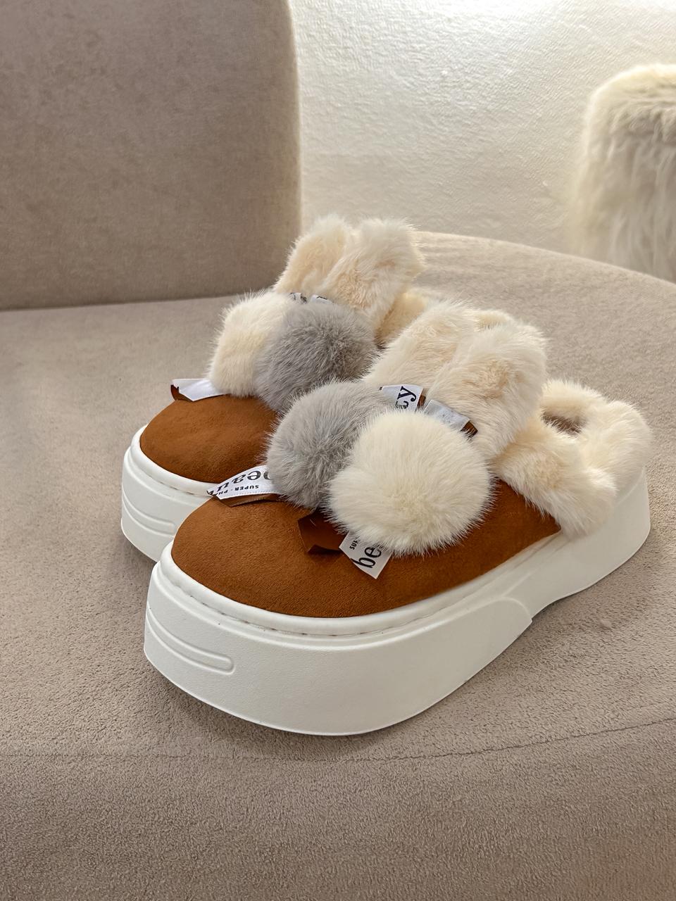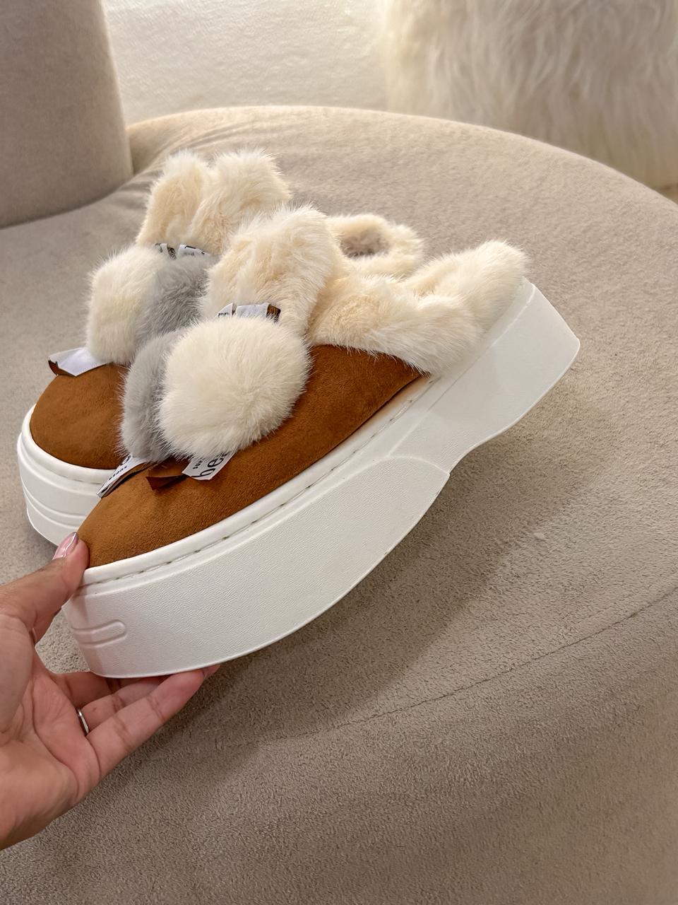 PANTUFA PLATAFORMA CARAMELO COM PELINHOS;