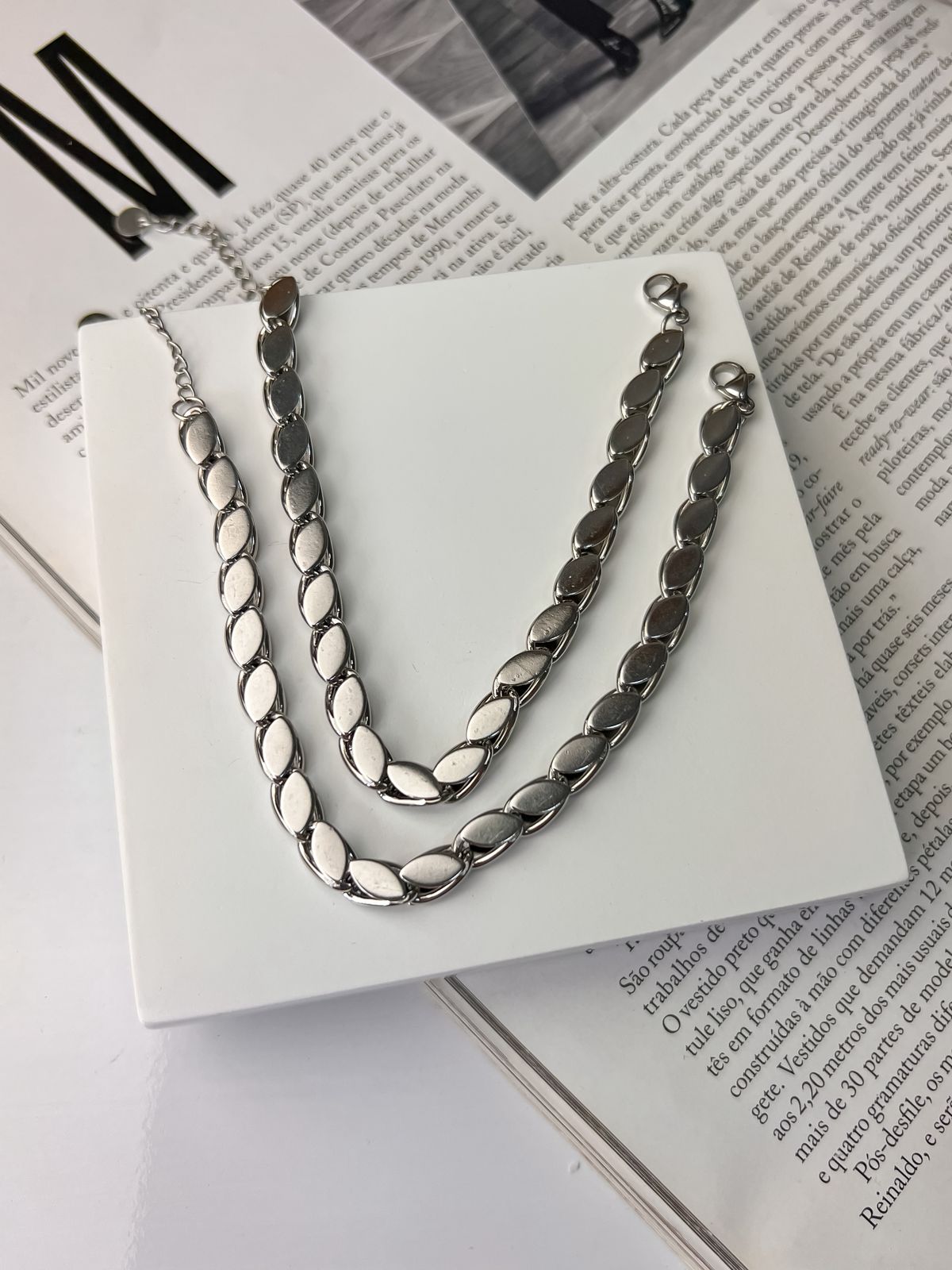 Pulseira dupla com pingente de coração e extensor banhado em ouro 18k, aço inoxidável.