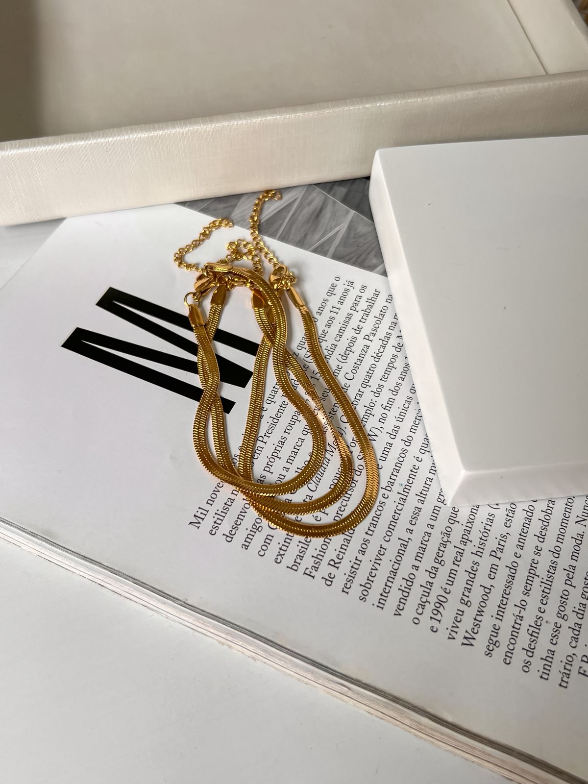 Pulseira fita banhado em ouro 18k, aço inoxidável.