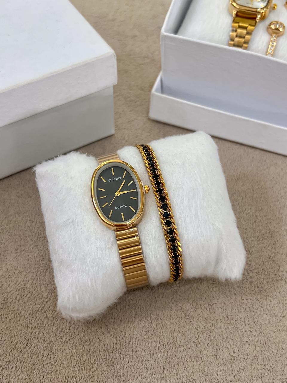 Relógio casio analógico oval prata em aço inoxidável com pulseira ajustável;