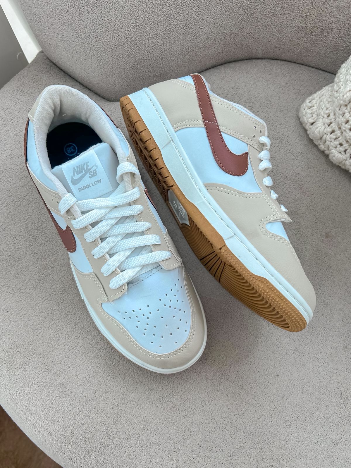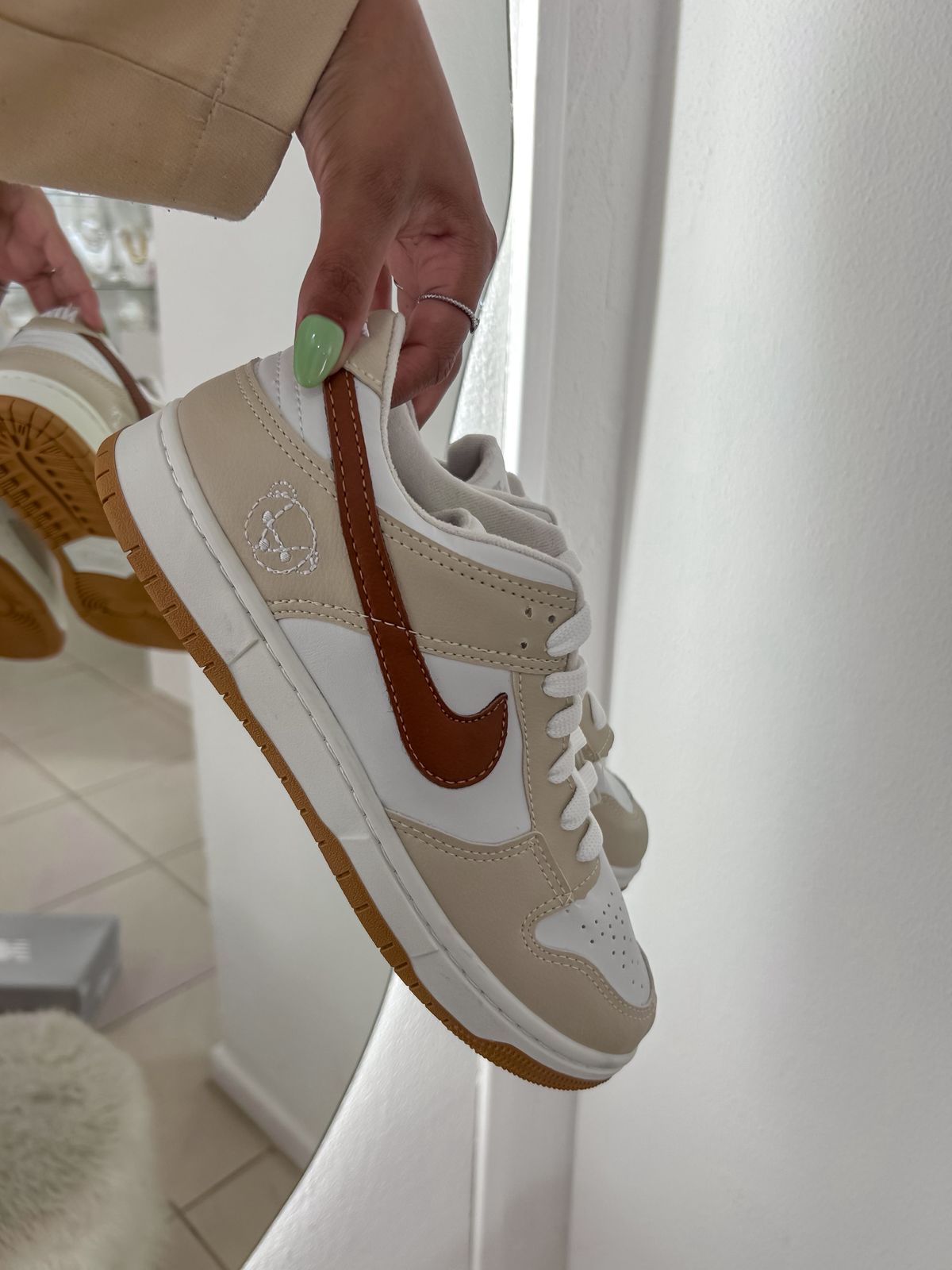 Tênis Dunk nude com marrom, linha premium;