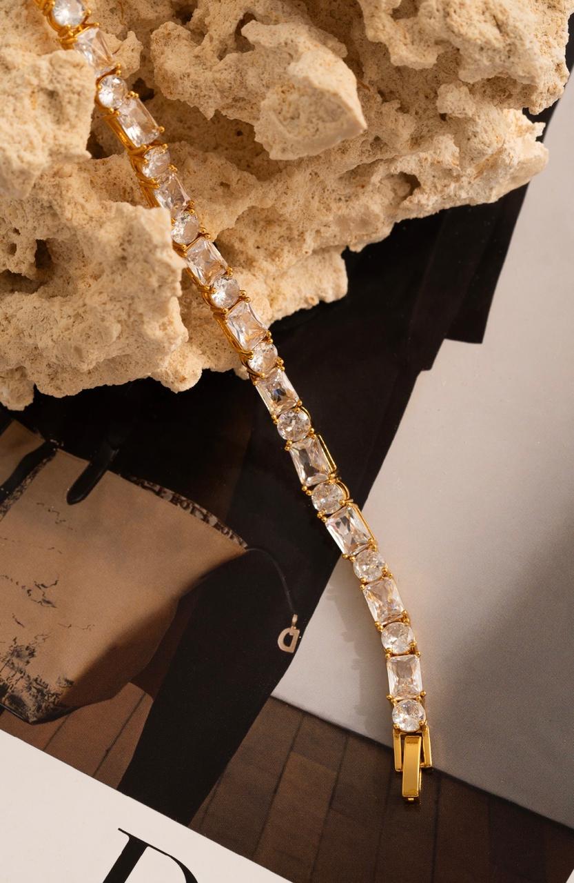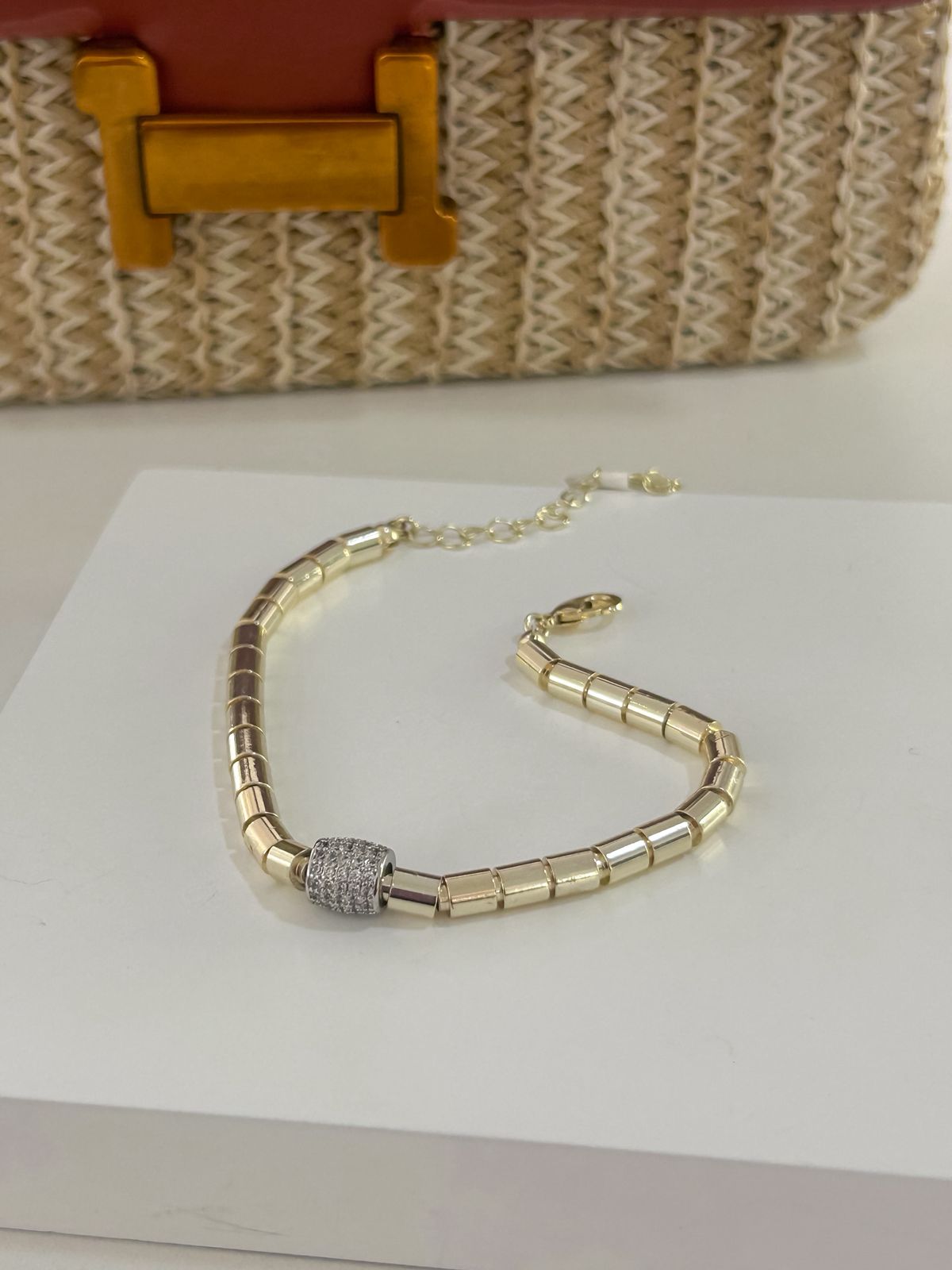 Pulseira com detalhe de pedras e fecho gaveta banhado em ouro 18k;