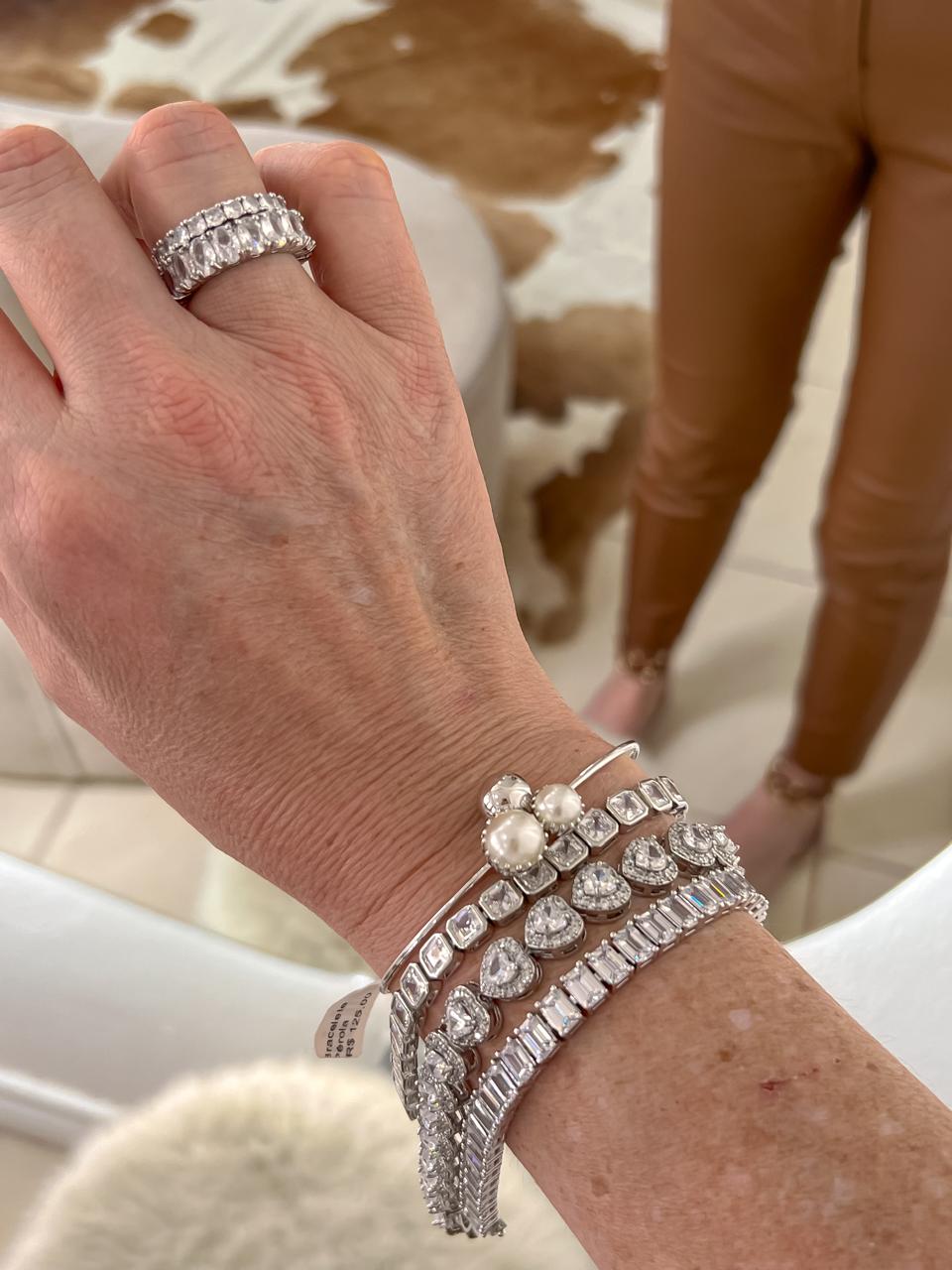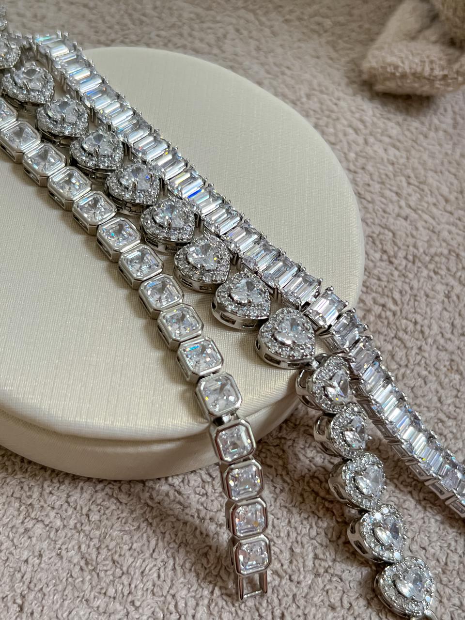 Pulseira riviera em zircônias, semijóia banhada em ouro Branco com fecho gaveta.