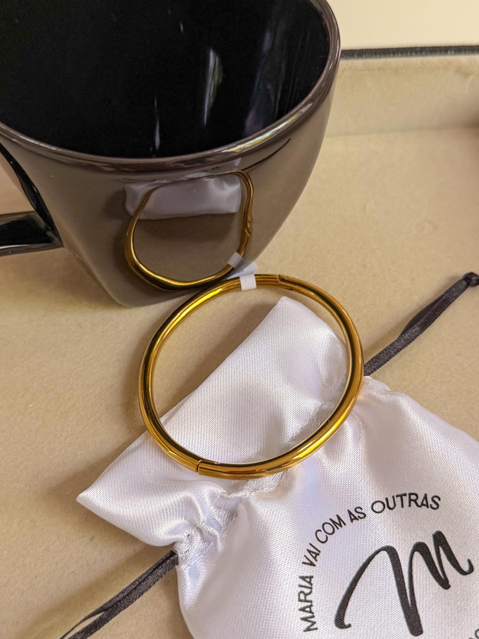 Bracelete aro liso todo fechado em aço inoxidável dourado.