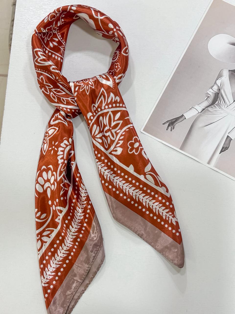 Lenço laranja com off estampado 100% poliéster;